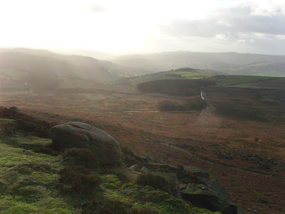 The views over to Kinder were fine at first, but Mother Nature seemed to have her felt pens out and quickly coloured everything to the west in grey. She spared us for some time along this never-ending, long tongue of a hill. It was a lovely place to be and I felt like I could have walked along it for hours. I'd say from the point where we joined it, to the summit rocks, was around 2.5 miles of loveliness.